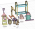 Ensemble accessoire garage diorama (fait via imprimante 3D) 1/24, inclus; 1X SUPPORT À PNEU 1X CHEVRE A MOTEUR 1X ASPIRATEUR STYLE SHOP VAC 1X SURVOLTEUR À BATTERIE 1X TRANSPALETTE MANUEL 1X CONTENANT DE CHANGEMENT D'HUILE 1X DIABLE DE TRANSPORT 3X CÔNE DE CIRCULATION