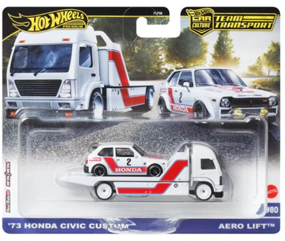 #80-'73 Honda Civic Custom with Aero Lift (JBM36), Hot Wheels Car Culture, Team Transport 2025 (JBM36)